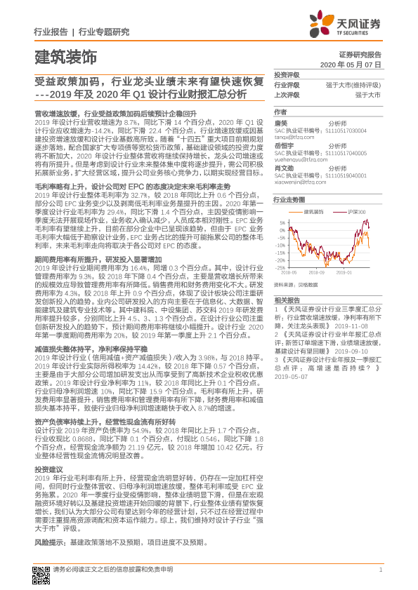 【天风证券】【20200507】建筑装饰行业专题研究:2019年及2020年Q1设计行业财报汇总分析-14页