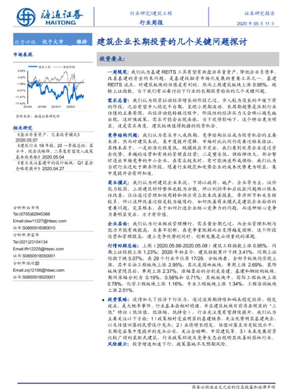 【海通证券】【20200511】建筑工程行业周报:建筑企业长期投资的几个关键问题探讨-6页