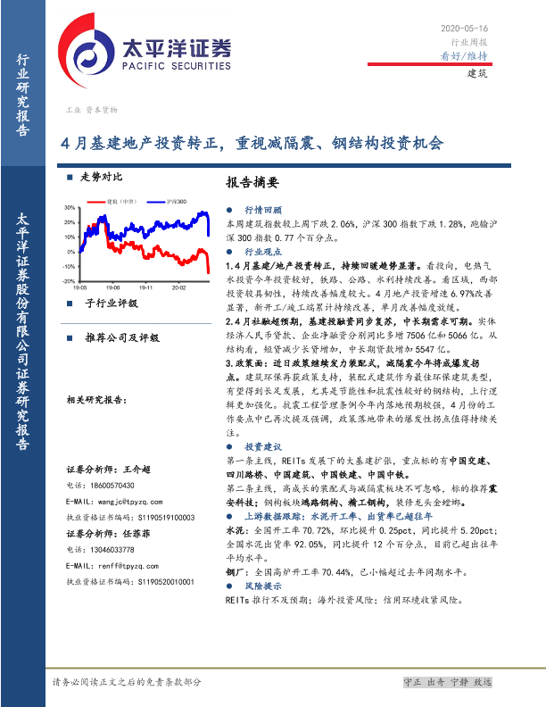 【太平洋证券】【20200516】4月基建地产投资转正,重视减隔震、钢结构投资机会-27页
