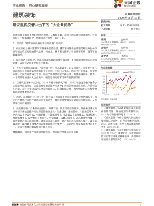 【天风证券】【20200517】建筑装饰行业研究周报:建议重视疫情冲击下的“大企业优势”-2页