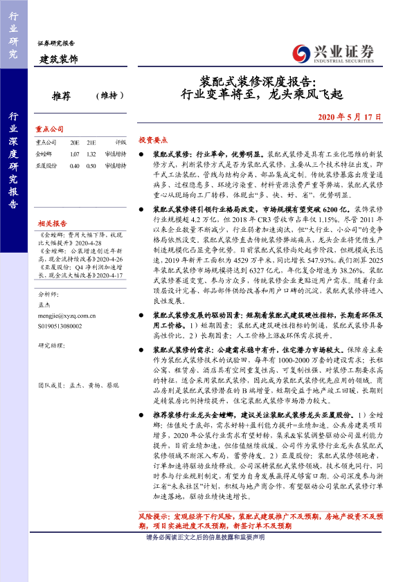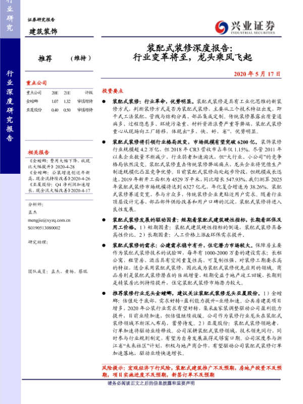 【兴业证券】【20200517】装配式装修深度报告:行业变革将至,龙头乘风飞起-35页