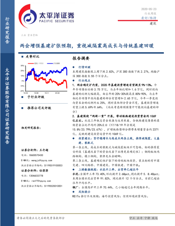【太平洋证券】【20200523】建筑行业周报:两会增强基建扩张预期,重视减隔震高成长与传统基建回暖-30页