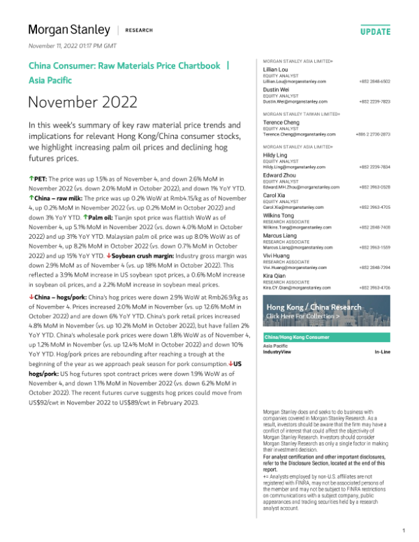 【Morgan Stanley】【202211】Stanley-China Consumer Raw Materials Price Chartbook November 2022-29页
