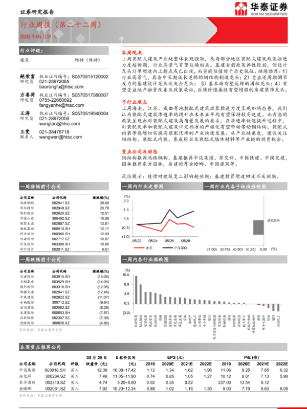 【华泰证券】【20200531】建筑行业周报(第二十二周)-10页