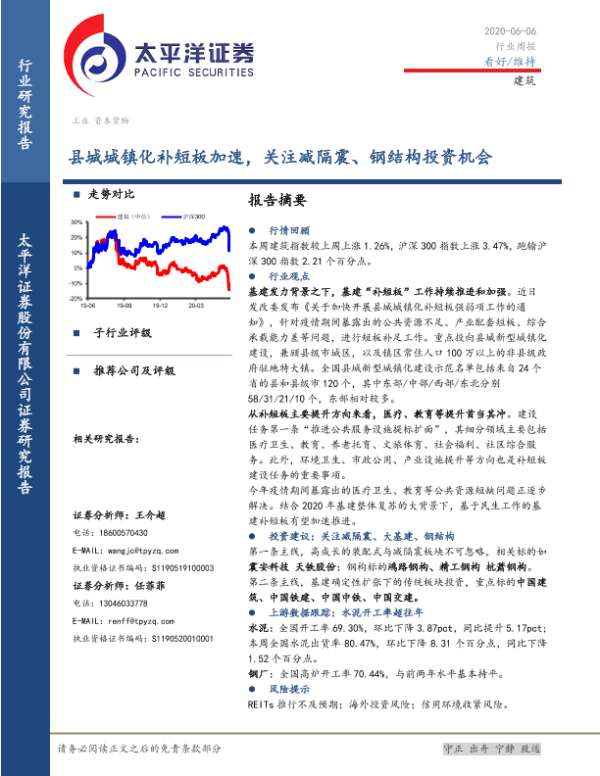 【太平洋证券】【20200606】建筑行业周报:县城城镇化补短板加速,关注减隔震、钢结构投资机会-31页