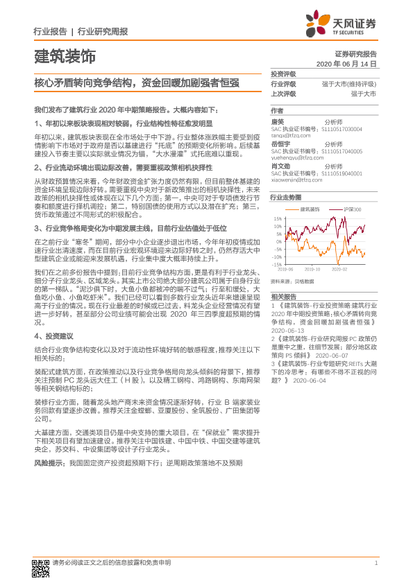 【天风证券】【20200614】建筑装饰行业研究周报:核心矛盾转向竞争结构,资金回暖加剧强者恒强-2页