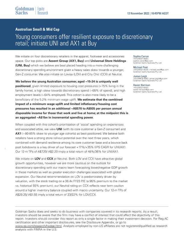 【Goldman Sachs】【20221113】resilient exposure to discretionary retail; initiate UNI and AX1 at Buy-70页