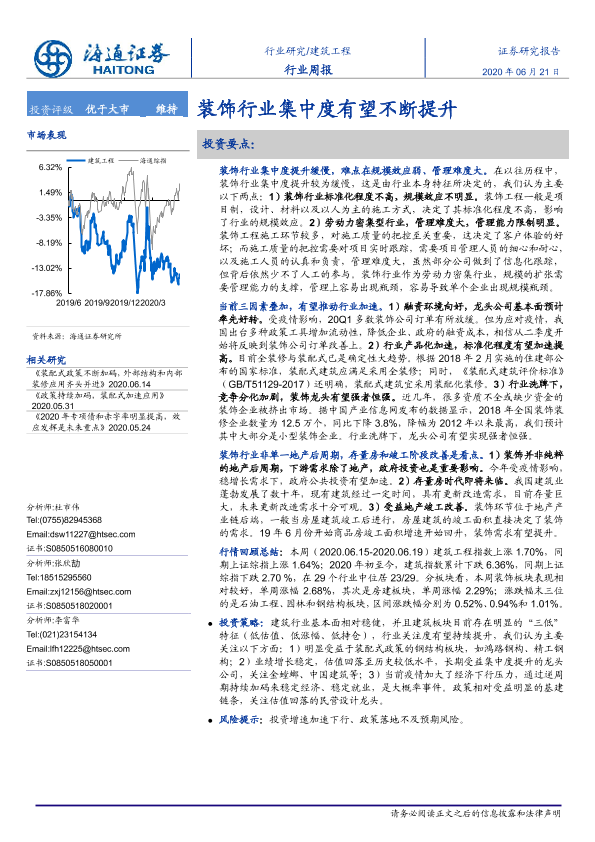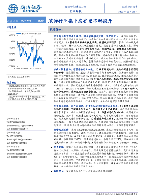 【海通证券】【20200621】建筑工程行业周报:装饰行业集中度有望不断提升-6页