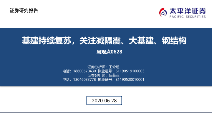 【太平洋证券】【20200628】基建周观点:基建持续复苏,关注减隔震、大基建、钢结构-37页