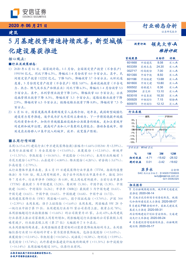 【安信证券】【20200621】5月基建投资增速持续改善,新型城镇化建设屡获推进-11页