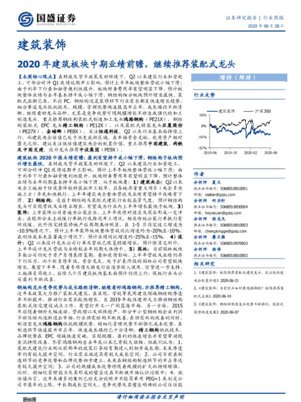 【国盛证券】【20200628】2020年建筑板块中期业绩前瞻,继续推荐装配式龙头-12页