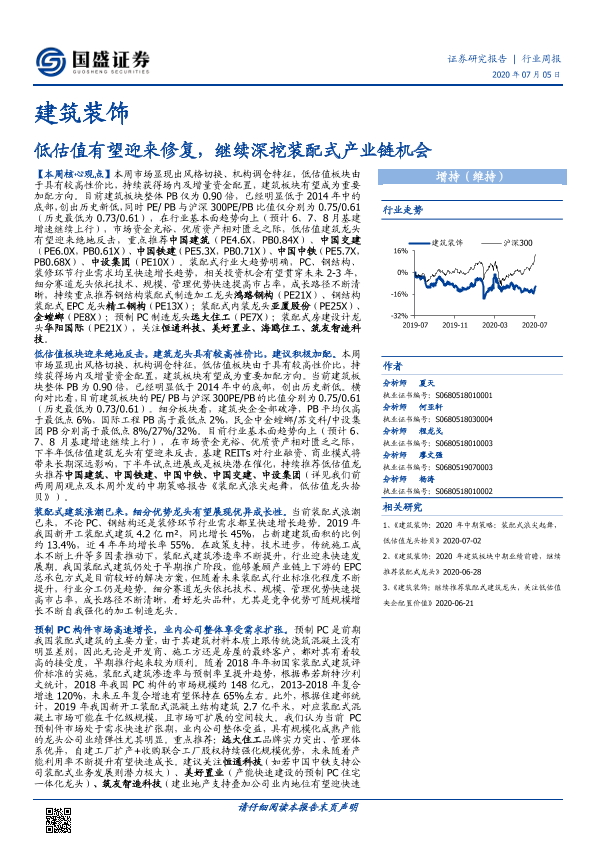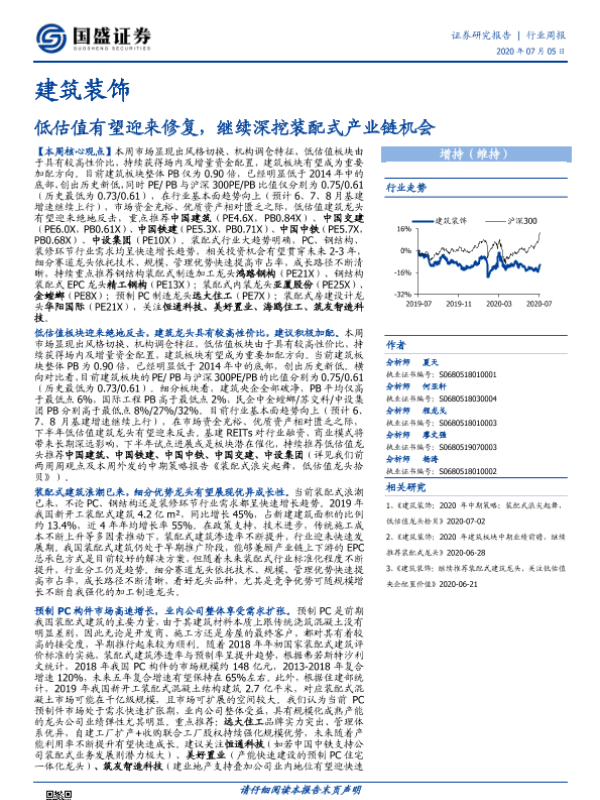 【国盛证券】【20200705】建筑装饰行业周报:低估值有望迎来修复,继续深挖装配式产业链机会-17页