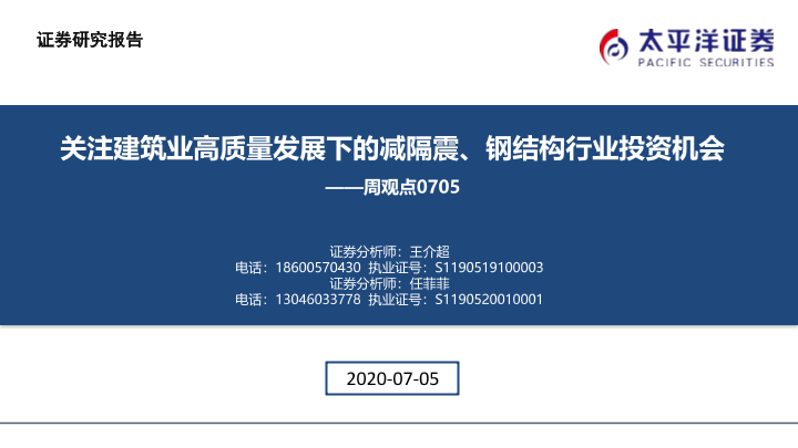 【太平洋证券】【20200705】建筑周观点:关注建筑业高质量发展下的减隔震、钢结构行业投资机会-39页