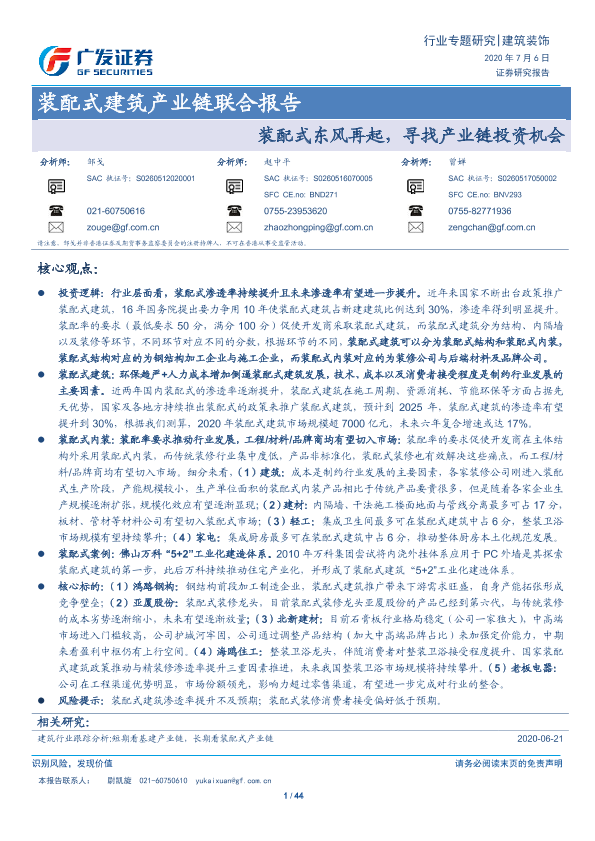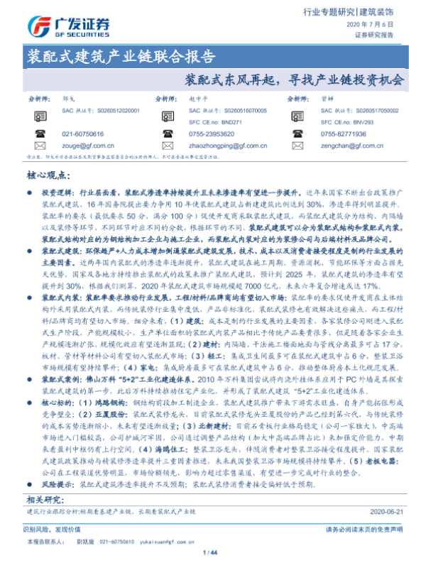【广发证券】【20200706】装配式建筑产业链联合报告:装配式东风再起,寻找产业链投资机会-44页
