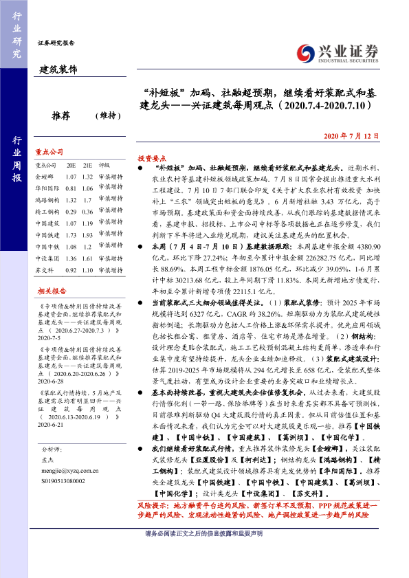 【兴业证券】【20200712】“补短板”加码、社融超预期,继续看好装配式和基建龙头-41页