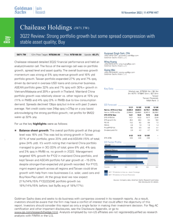 【Goldman Sachs】【20221110】rtfolio growth but some spread compression with stable asset quality; Buy-10页