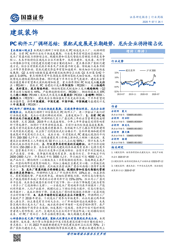 【国盛证券】【20200726】建筑装饰行业周报:PC构件工厂调研总结-14页