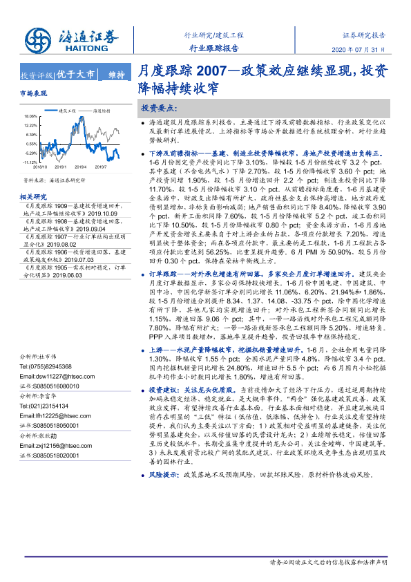 【海通证券】【20200731】建筑工程月度跟踪2007—政策效应继续显现,投资降幅持续收窄-15页