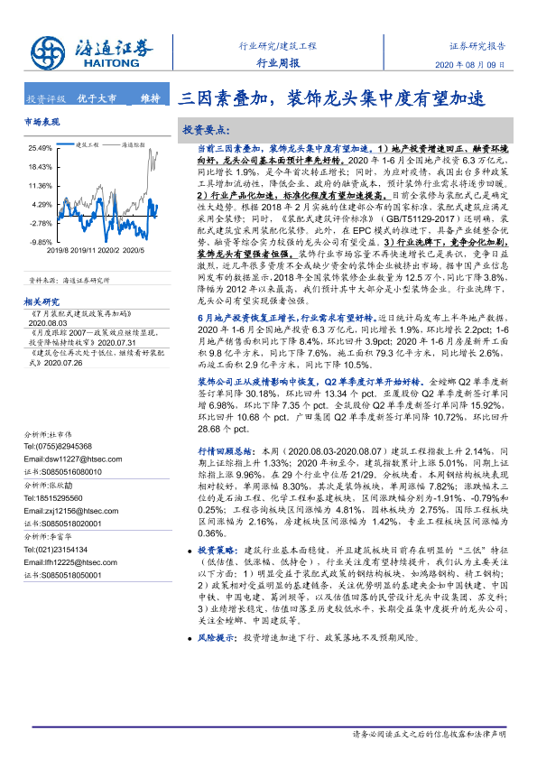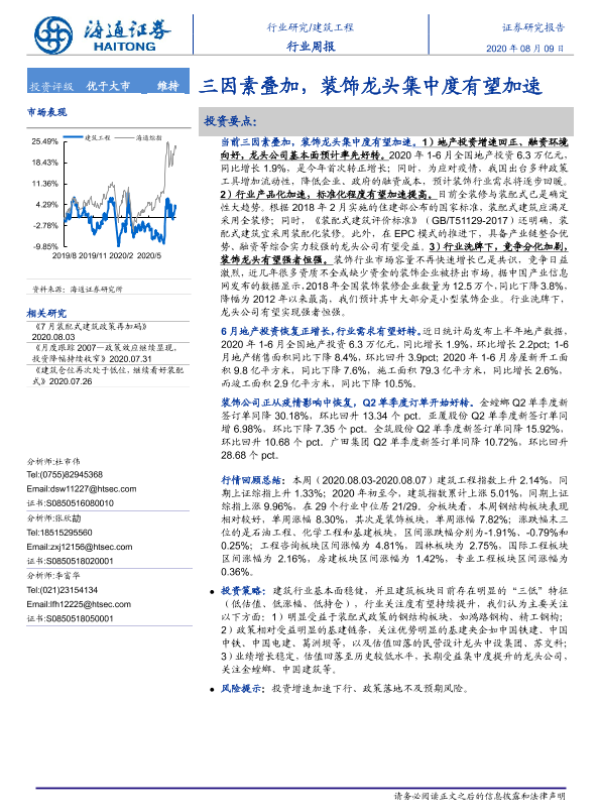 【海通证券】【20200809】建筑工程行业周报:三因素叠加,装饰龙头集中度有望加速-6页
