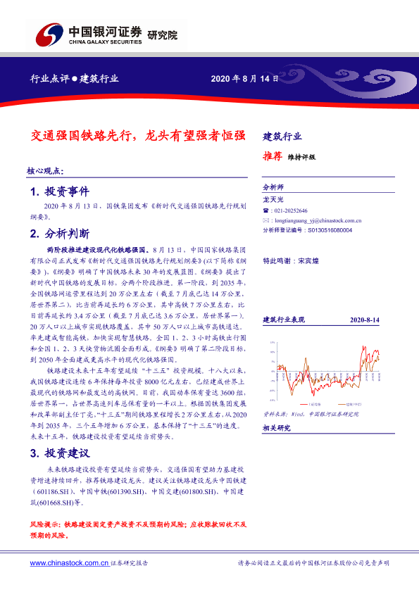 【银河证券】【20200814】建筑行业:交通强国铁路先行,龙头有望强者恒强-3页