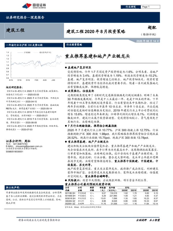 【国信证券】【20200814】2020年8月建筑工程投资策略:重点推荐基建和地产产业链龙头-23页