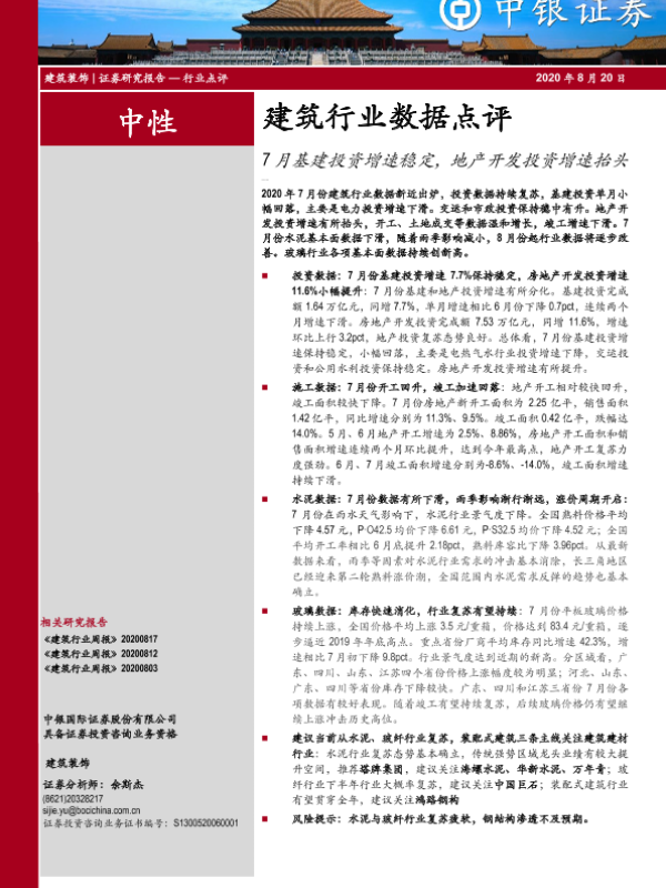 【中银证券】【20200820】7月基建投资增速稳定,地产开发投资增速抬头-7页