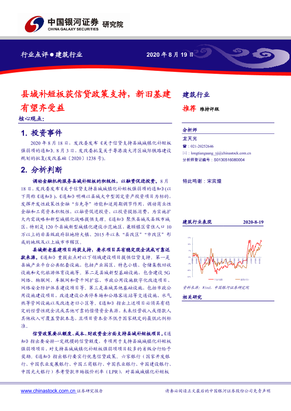 【银河证券】【20200819】建筑行业:县域补短板获信贷政策支持,新旧基建有望齐受益-4页