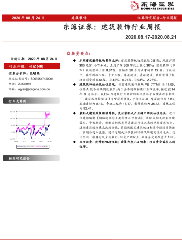 【东海证券】【20200824】建筑装饰行业周报-8页