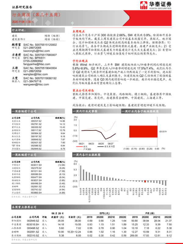【华泰证券】【20200830】建筑行业周报(第三十五周)-13页