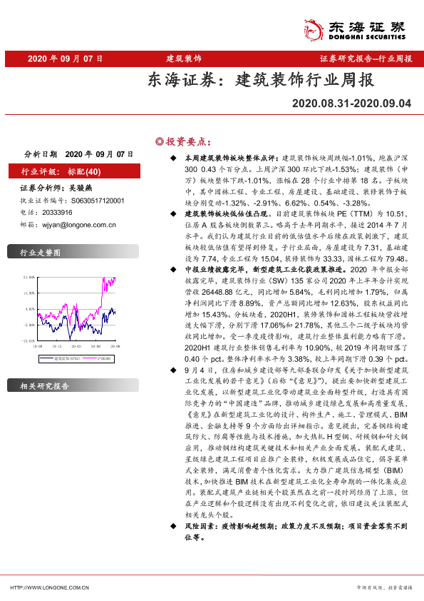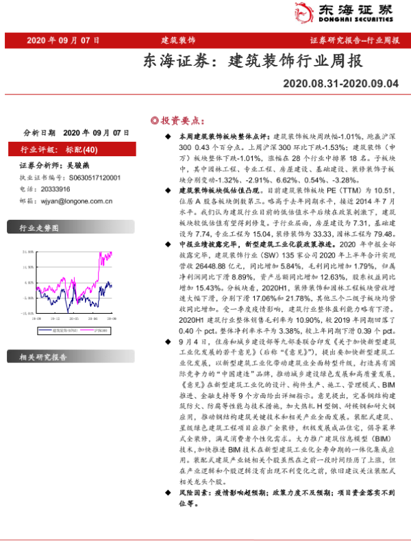 【东海证券】【20200907】建筑装饰行业周报-7页