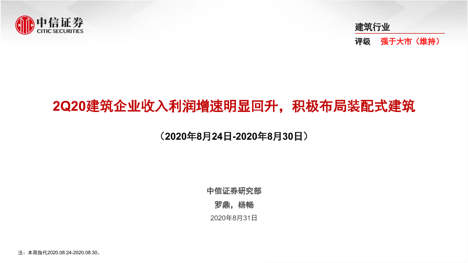 【中信证券】【20200831】2Q20建筑企业收入利润增速明显回升,积极布局装配式建筑-45页