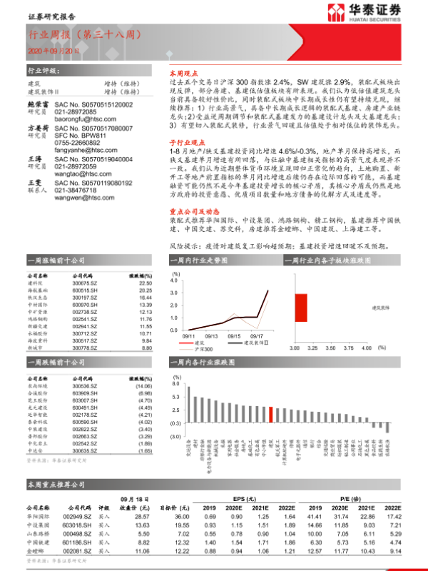 【华泰证券】【20200920】建筑行业周报(第三十八周)-14页