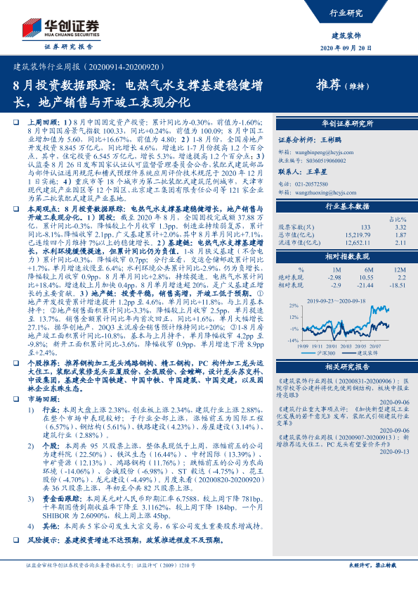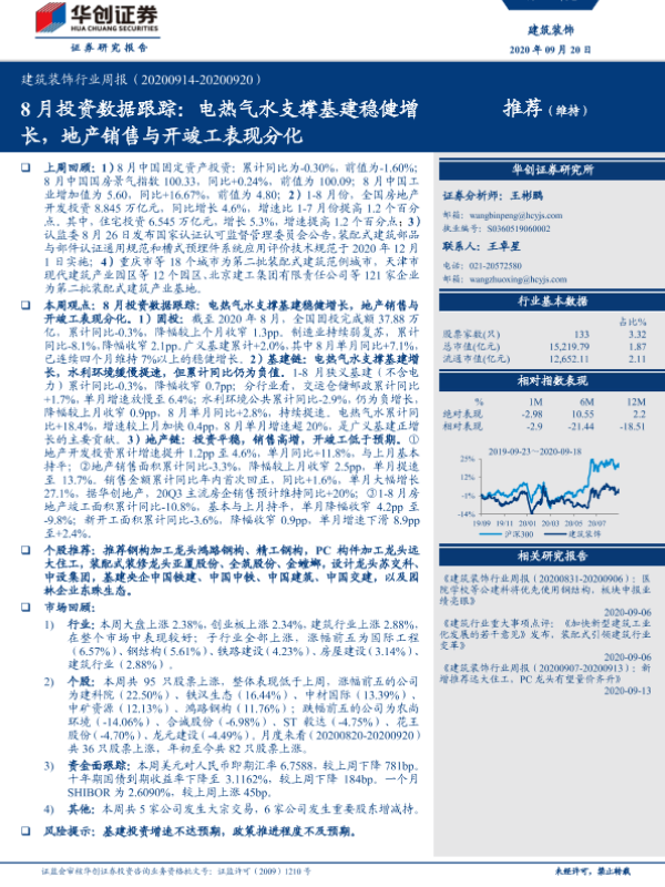 【华创证券】【20200920】8月投资数据跟踪:电热气水支撑基建稳健增长,地产销售与开竣工表现分化-17页