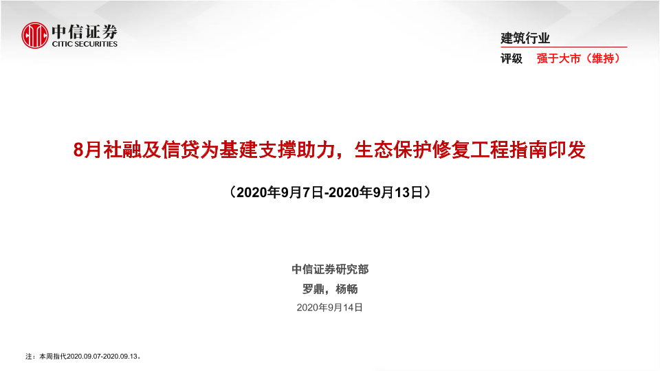【中信证券】【20200914】8月社融及信贷为基建支撑助力,生态保护修复工程指南印发-46页