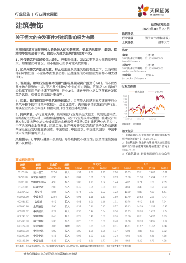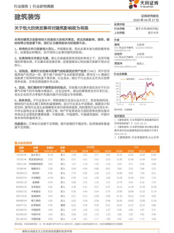 【天风证券】【20200927】建筑装饰行业研究周报:关于恒大的突发事件对建筑影响极为有限-2页