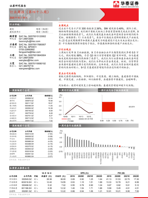 【华泰证券】【20201018】建筑行业周报(第四十二周)-12页