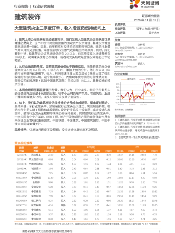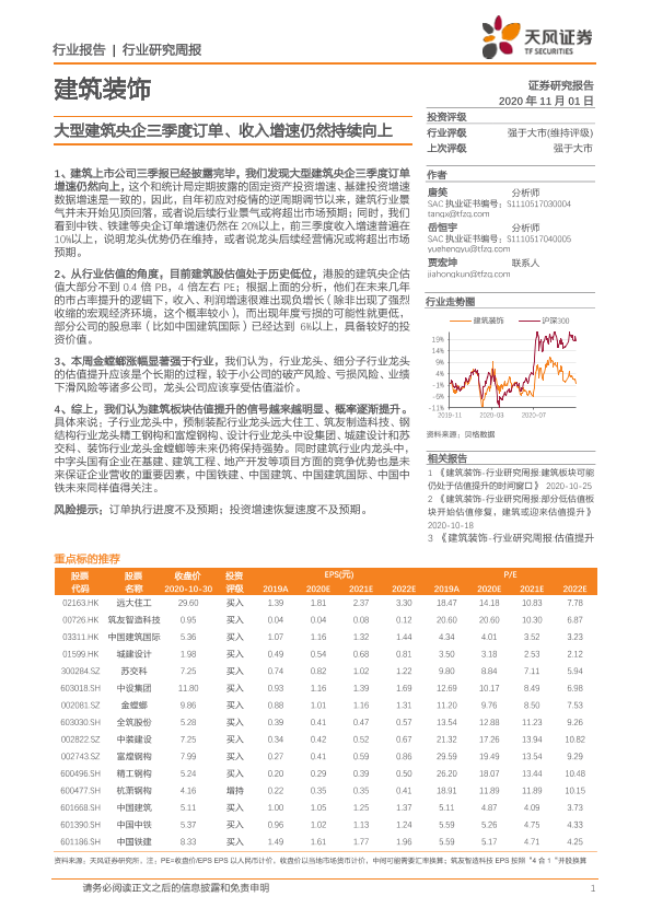 【天风证券】【20201101】建筑装饰行业研究周报:大型建筑央企三季度订单、收入增速仍然持续向上-2页