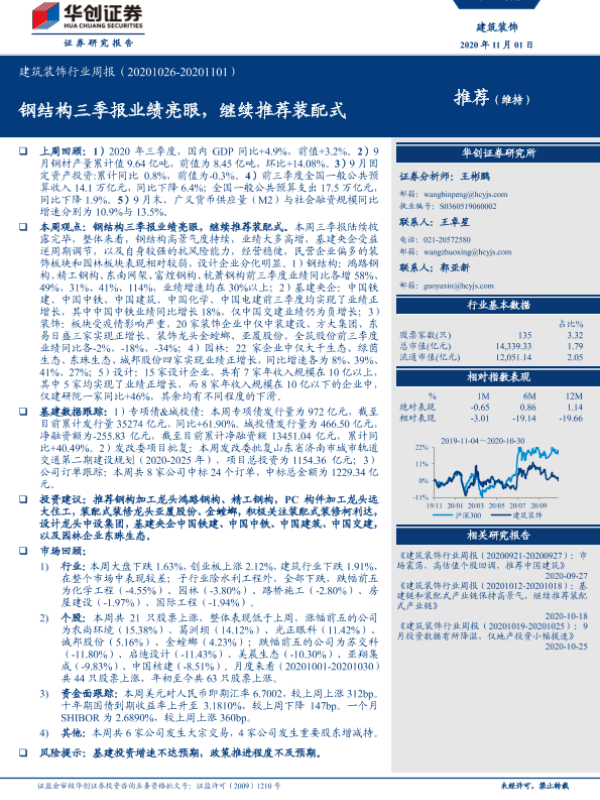 【华创证券】【20201101】建筑装饰行业周报:钢结构三季报业绩亮眼,继续推荐装配式-28页