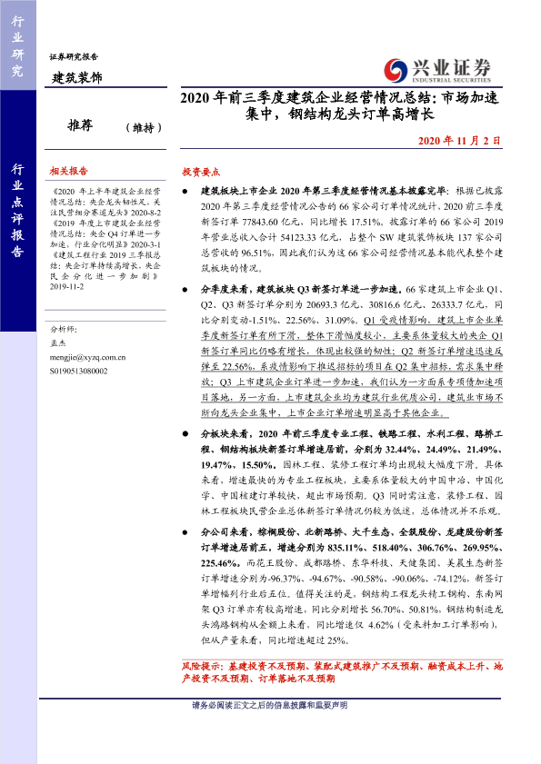 【兴业证券】【20201102】2020年前三季度建筑企业经营情况总结-8页