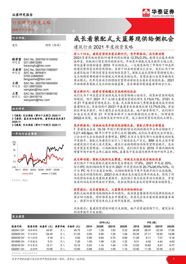 【华泰证券】【20201115】建筑行业2021年度投资策略:成长看装配式,大蓝筹现供给侧机会-44页