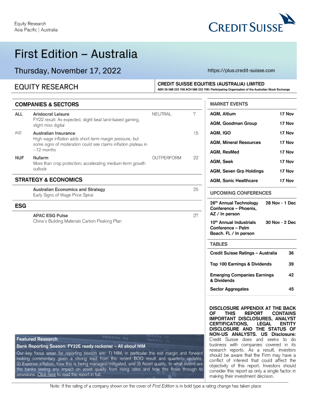 【Credit Suisse Equities (Australia) Limited】【20221117】First Edition – Australia-50页