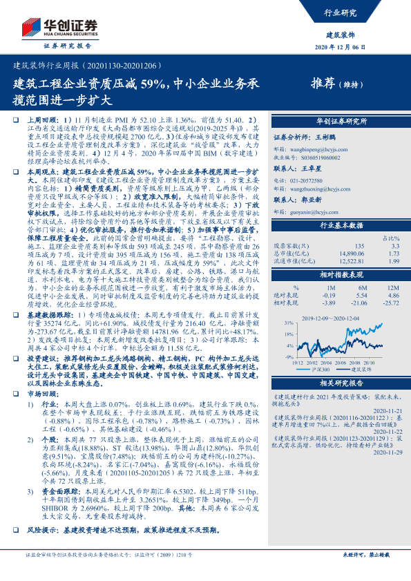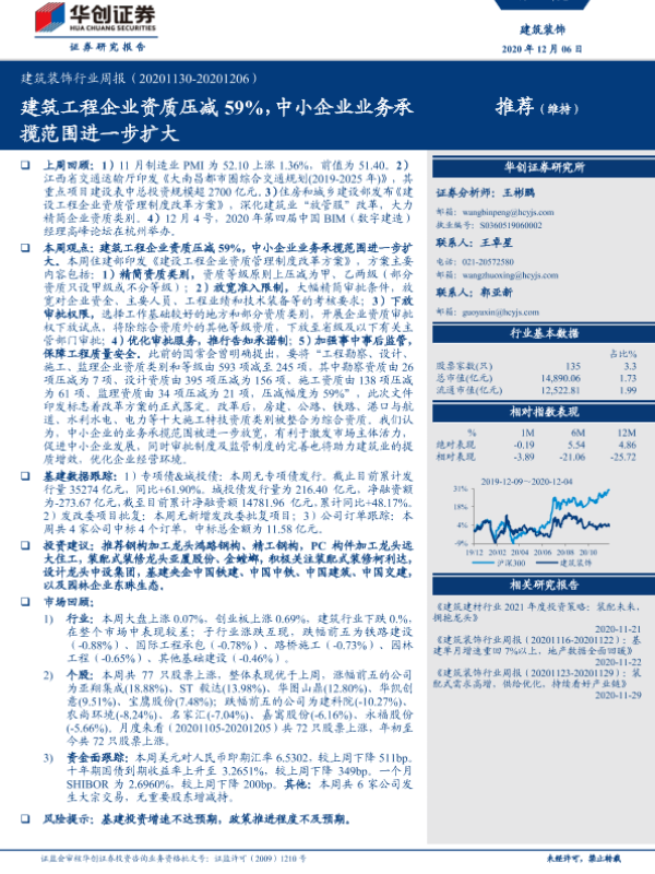 【华创证券】【20201206】建筑装饰行业周报:建筑工程企业资质压减59%,中小企业业务承揽范围进一步扩大-18页