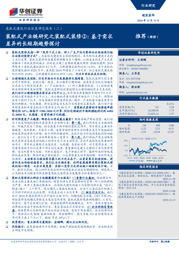【华创证券】【20201215】装配式建筑行业深度研究报告(二):装配式产业链研究之装配式装修①:基于需求差异的长短期趋势探讨-20页