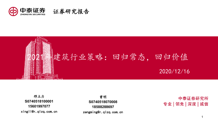 【中泰证券】【20201216】2021年建筑行业策略:回归常态,回归价值-34页