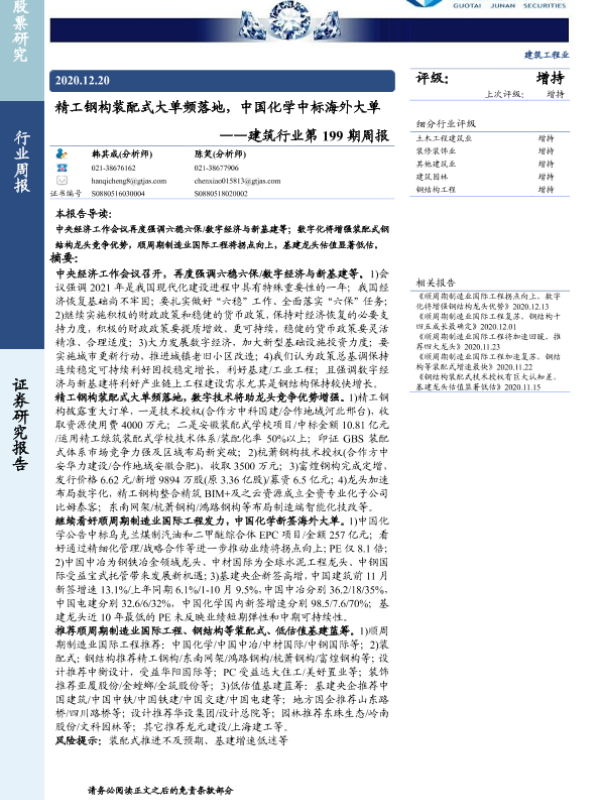 【国泰君安证券】【20201220】建筑行业第199期周报:精工钢构装配式大单频落地,中国化学中标海外大单-7页
