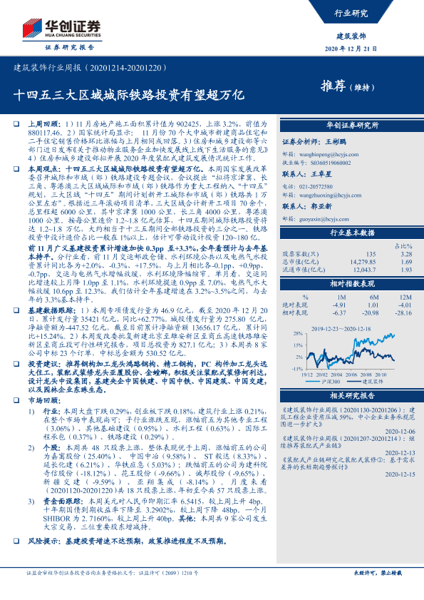 【华创证券】【20201221】建筑装饰行业周报:十四五三大区域城际铁路投资有望超万亿-20页