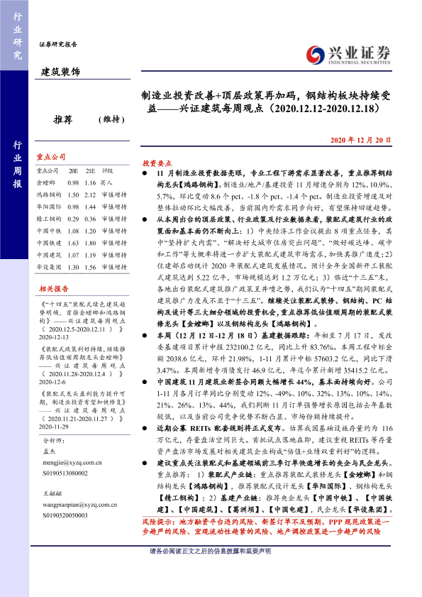 【兴业证券】【20201220】制造业投资改善+顶层政策再加码,钢结构板块持续受益-41页