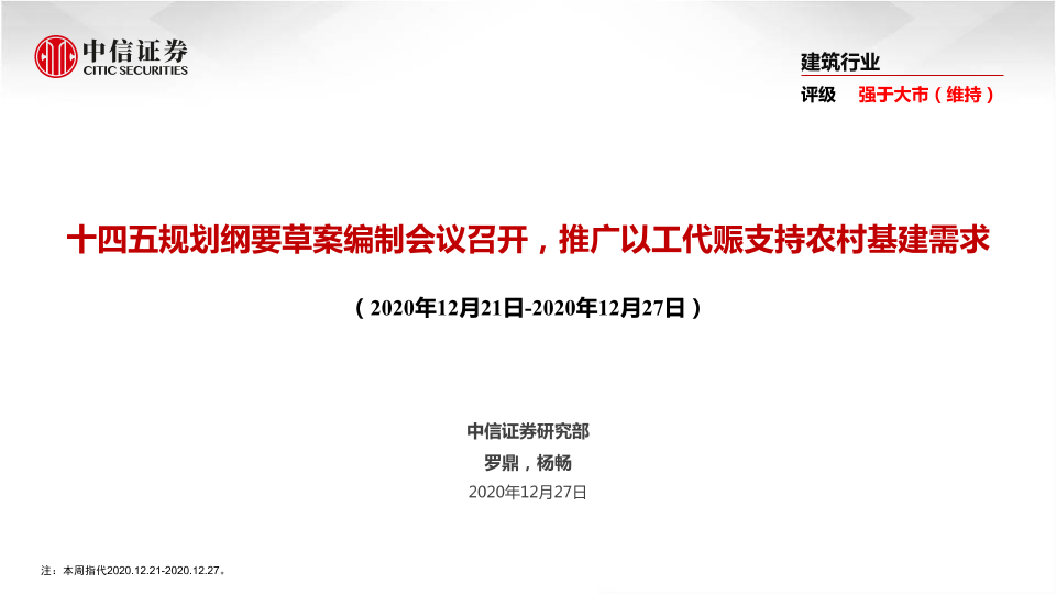 【中信证券】【20201227】建筑行业:十四五规划纲要草案编制会议召开,推广以工代赈支持农村基建需求-46页