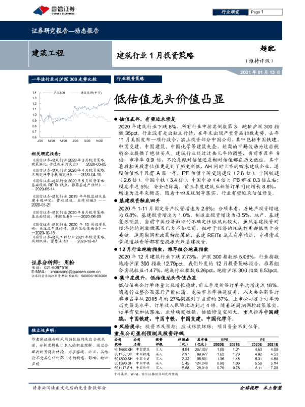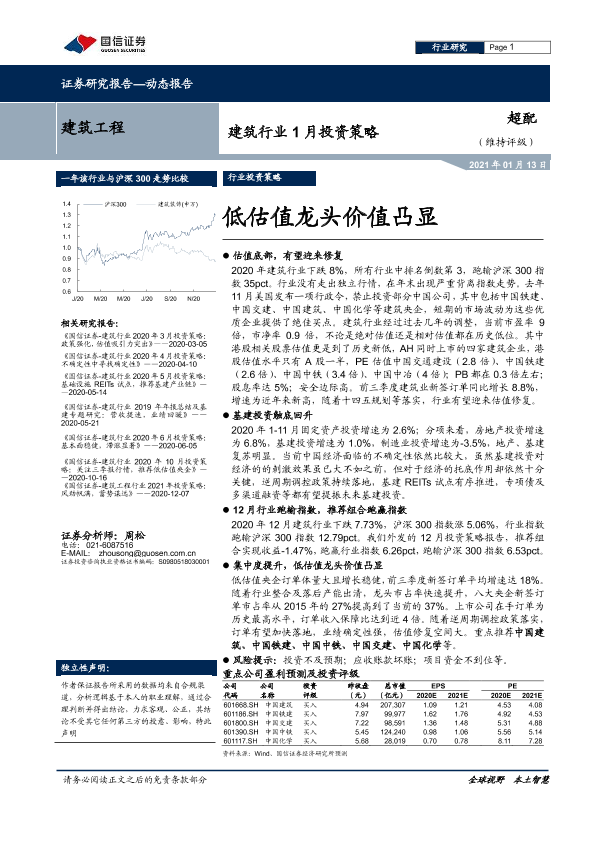 【国信证券】【20210113】建筑行业1月投资策略:低估值龙头价值凸显-17页