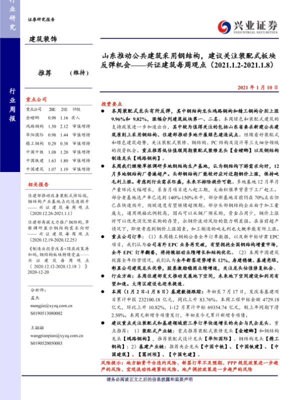 【兴业证券】【20210110】山东推动公共建筑采用钢结构,建议关注装配式板块反弹机会-41页
